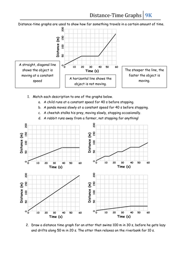 A worksheet that requires the pupils to construct their own graphs of motion, and answers questions about them. Worksheets are distance vs time graph work, mathematics linear 1ma0 distance time graphs, motion graphs, name block velocityacceleration work calculating, velocity time graph problems, topic 3 kinematics displacement velocity acceleration, distance time speed practice problems, work. Distance vs time graphs worksheet with answers.pdf. Distance vs time graph worksheet. This type of graph gives a visual aid to the comparison of a distance versus the time that has passed.